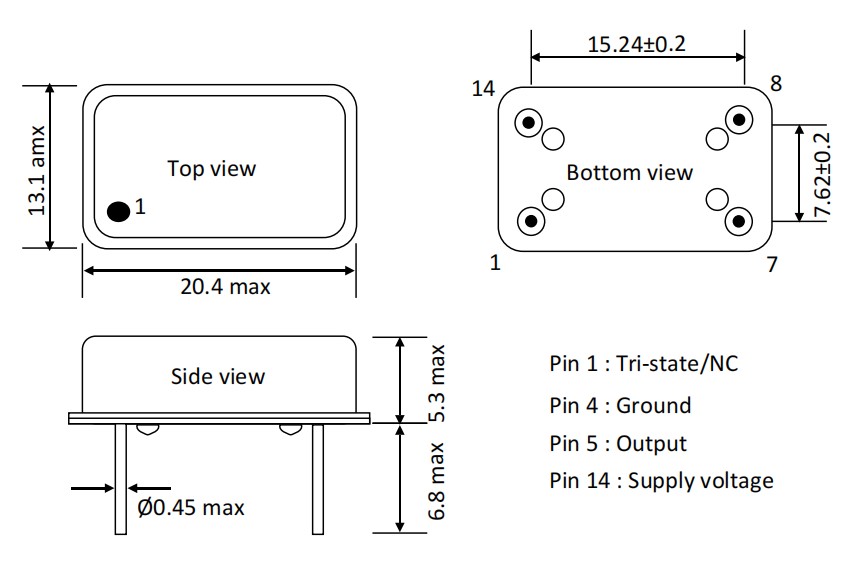 | Output voltage high | Voh | HCMOS: 90% Vcc min ; TTL: 2.4V min | ||||||||||||||||||||||||||