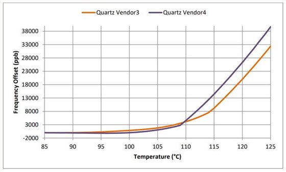 汽车级晶体振荡器(XO)的工作温度最高可达+125°C,能够满足许多应用的要求,这种振荡器很常见。但是精密振荡器,例如温控晶体振荡器(TCXOs)工作温度高于+85°C的恒温晶体振荡器(OCXOs)非常罕见。对于某些应用,例如同步以太网(SyncE)、IEEE 1588和为蜂窝基站提供回程服务的电信边界/从时钟,必须了解这些设备在其额定温度范围之外的工作情况,以便确定系统在故障条件下能够维持服务的程度。