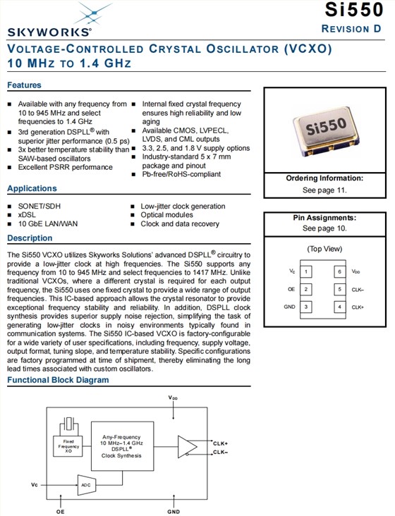 Skyworks晶体,550FD74M2500DGR,7050贴片晶振,6G低抖动晶振特点
