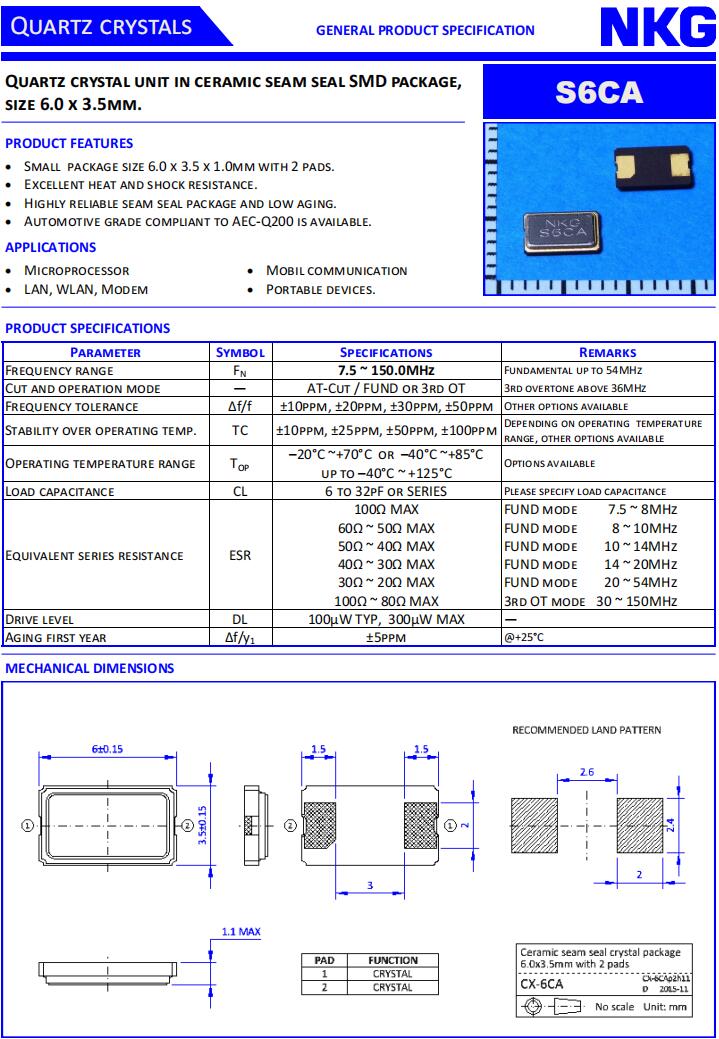 S6CA26.0000F16M1Y-EXT|NKG Crystal|TAIHETH特点: