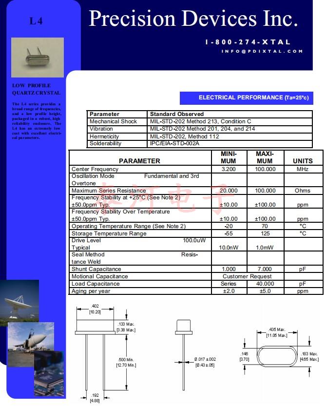 美国PDI晶振,L4两脚插件晶振,通讯设备晶振