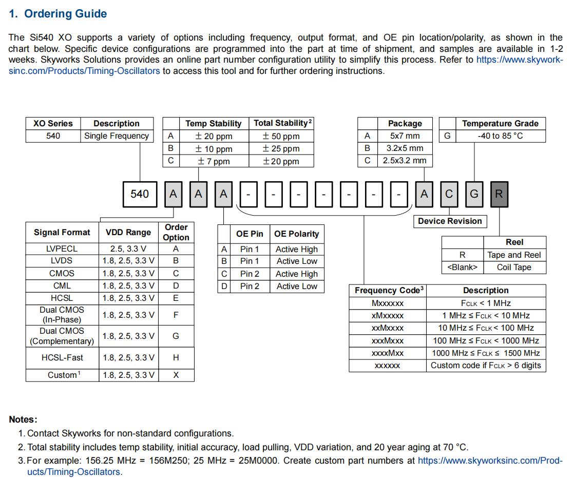 思佳讯振荡器,540BAA125M000BBG,125M差分晶振,6G存储器晶振规格表